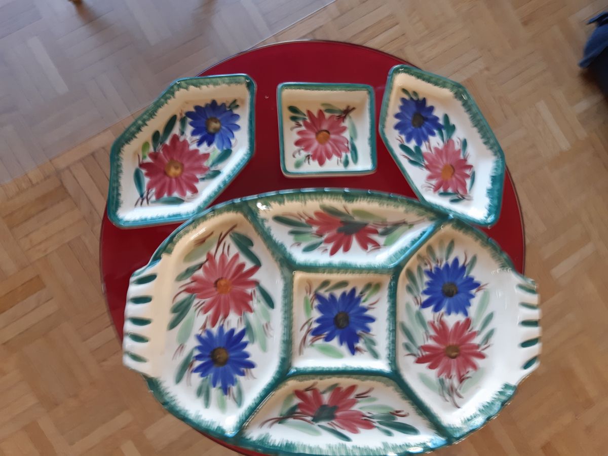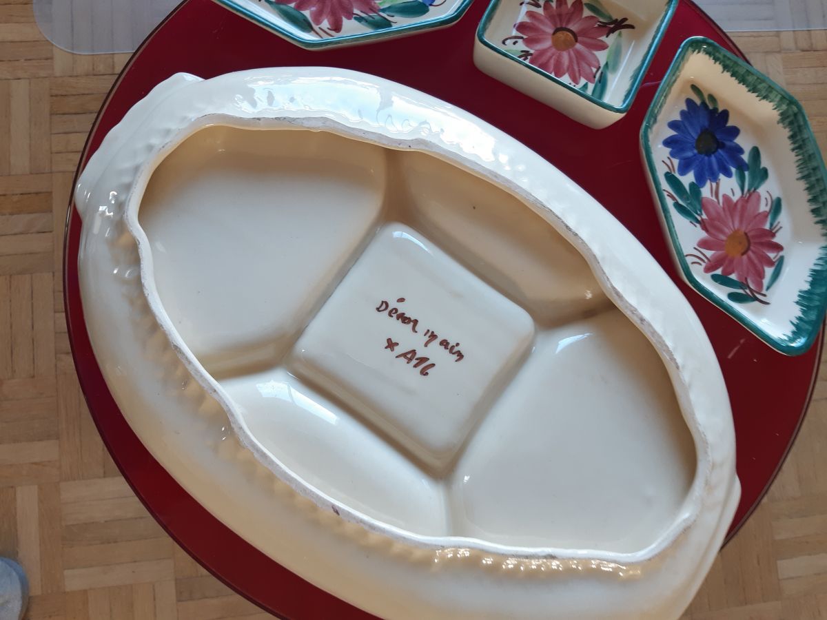 Grand plateau à compartiments en faience, pour l'apéro ou hors d'oeuvre.