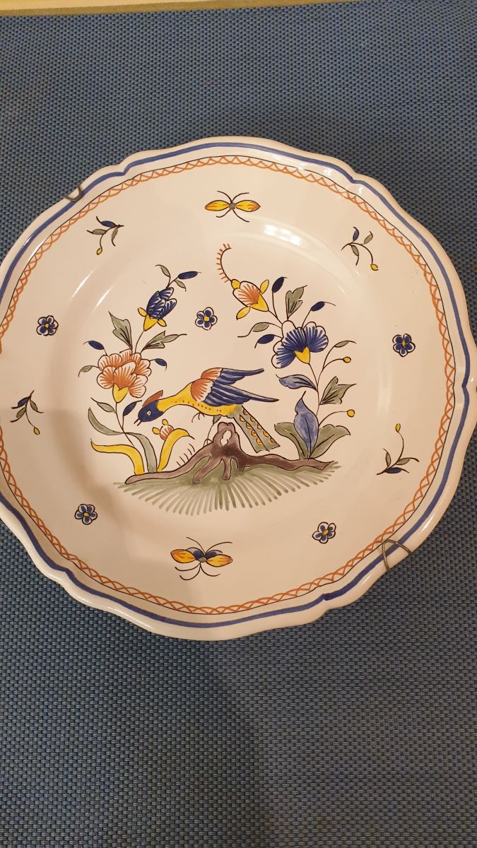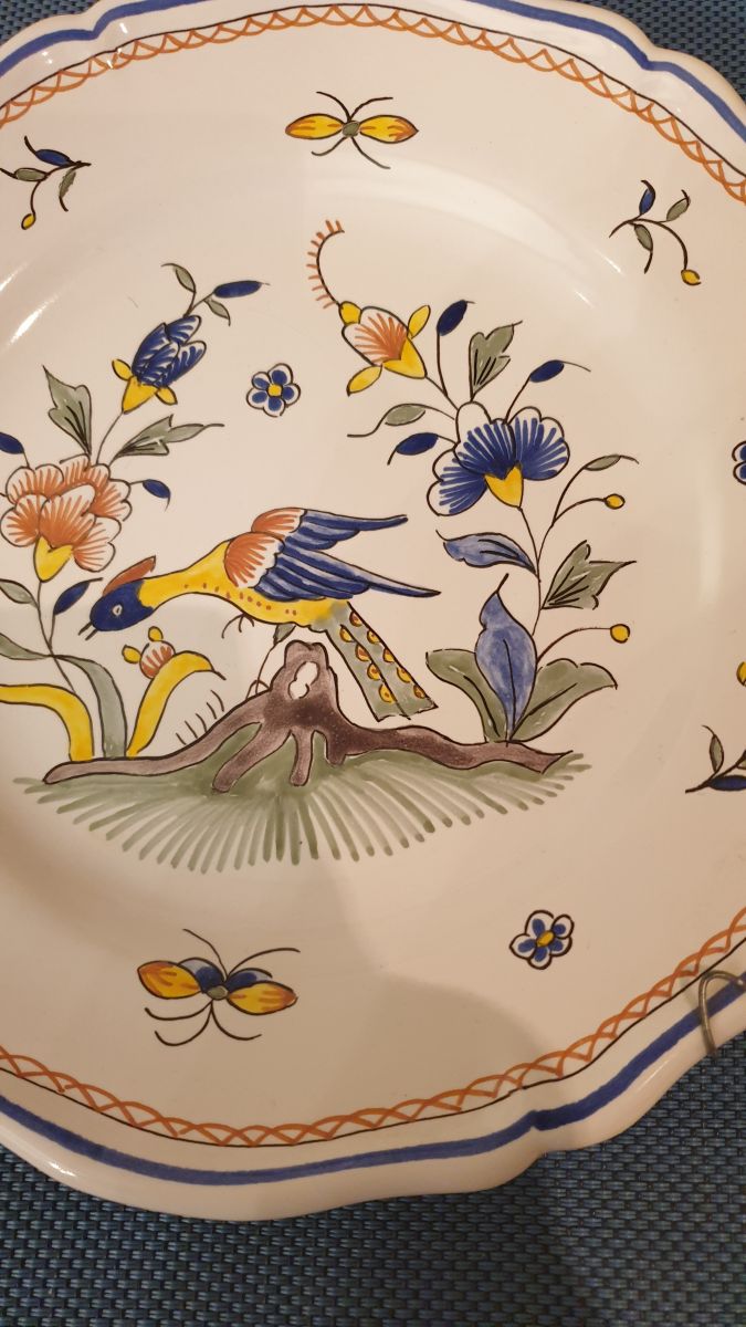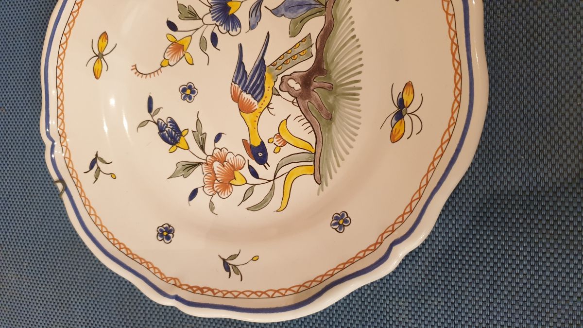 Faïence de Rouen , décor fait main , motif et coloris traditionnels de la Faïencerie de Rouen.