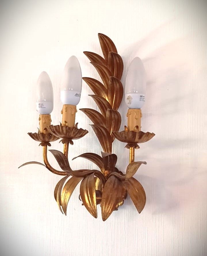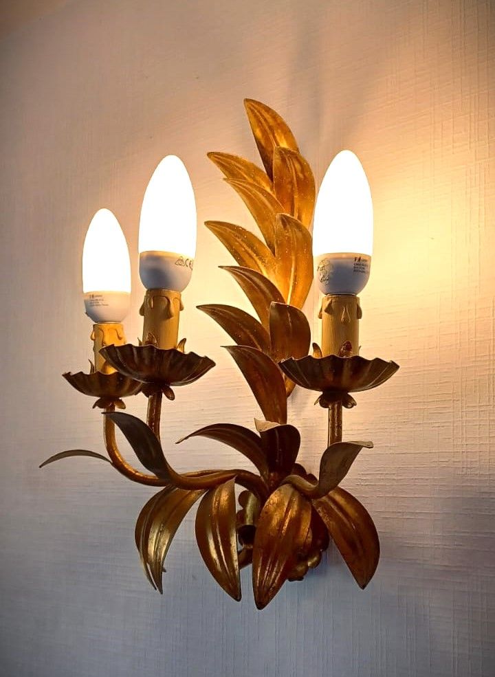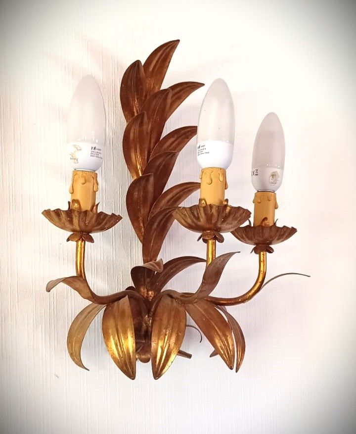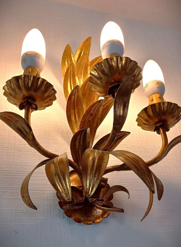 Rare applique murale florentine des années 1970 avec 3 douilles entièrement fonctionnelle.