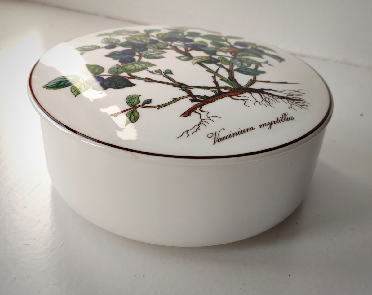 Boîte bonbonnière signée Villeroy & Boch ( Luxembourg) en porcelaine de la série Botanica, décor Myrtille (vaccinium myrtillus)