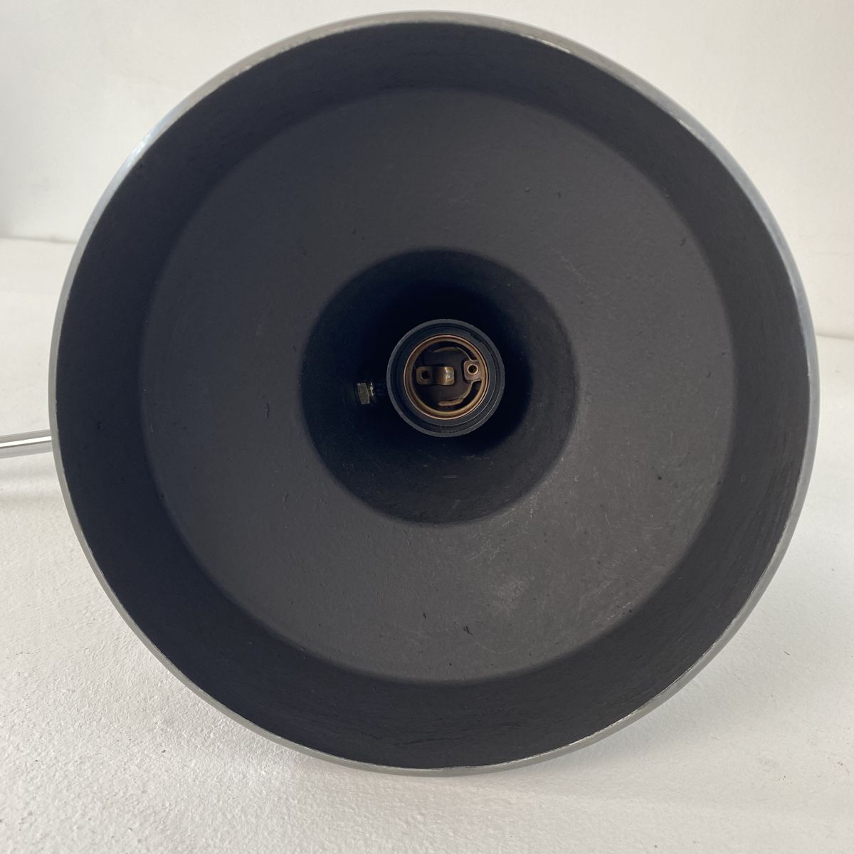 Très bel état général pour cette lampe qui a été démontée, poncée et patinée sur la base et l’extérieur du réflecteur. L’intérieur de l’abat-jour a été repeint avec une peinture haute température.