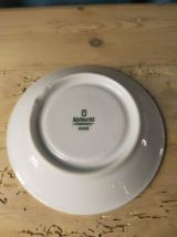 Une des soucoupes présente un éclat à sa base, invisible en situation, le fond montre une fêlure de l'émail (voir photo)