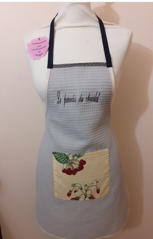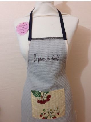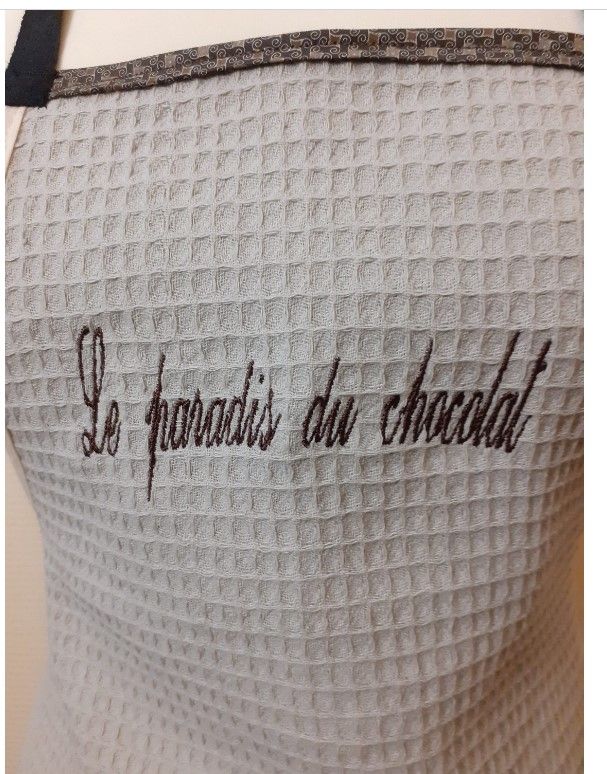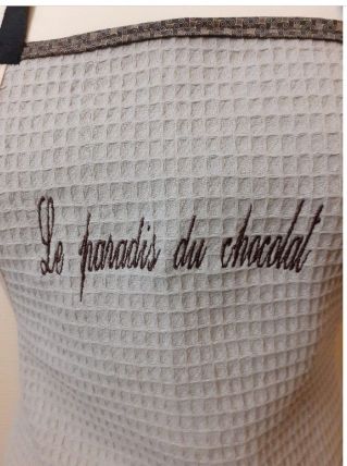 Tablier de cuisine en tissu nid d'abeille broderie Le paradis du chocolat