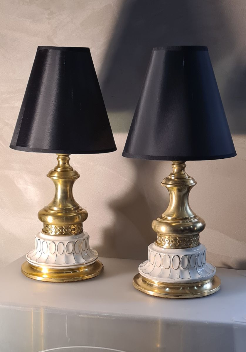 2 lampe de chevet style bouillotte laiton poterie creme et or, 1980, 38x22 model pas commun.trace dusure legere , merci de regarder les photos