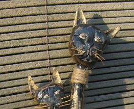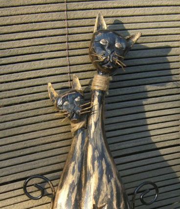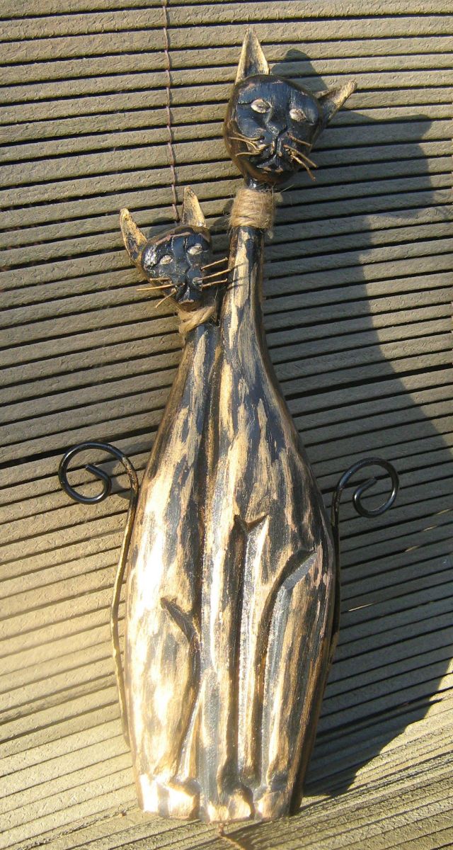 couple de chats bois patiné