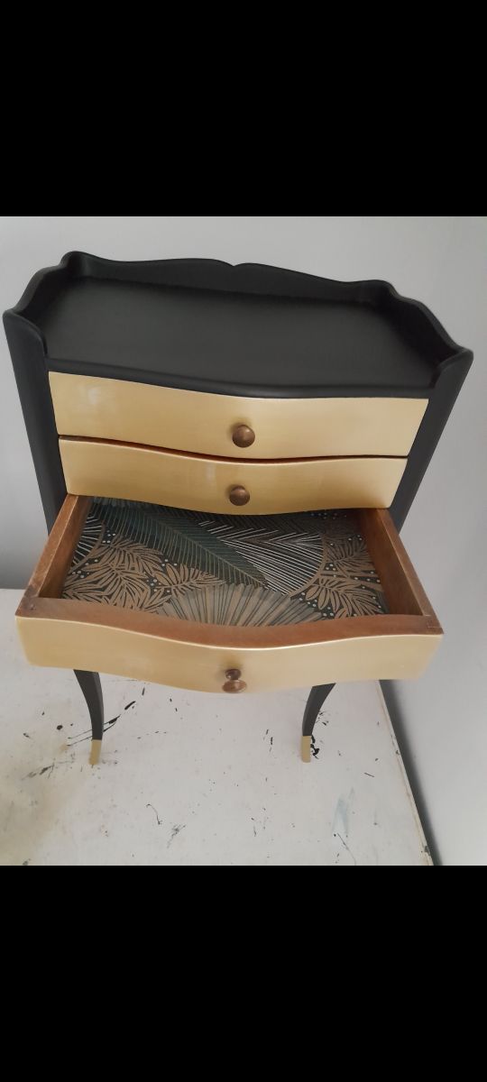 Table de chevet style art deco avec 3 tiroirs costumiser.
