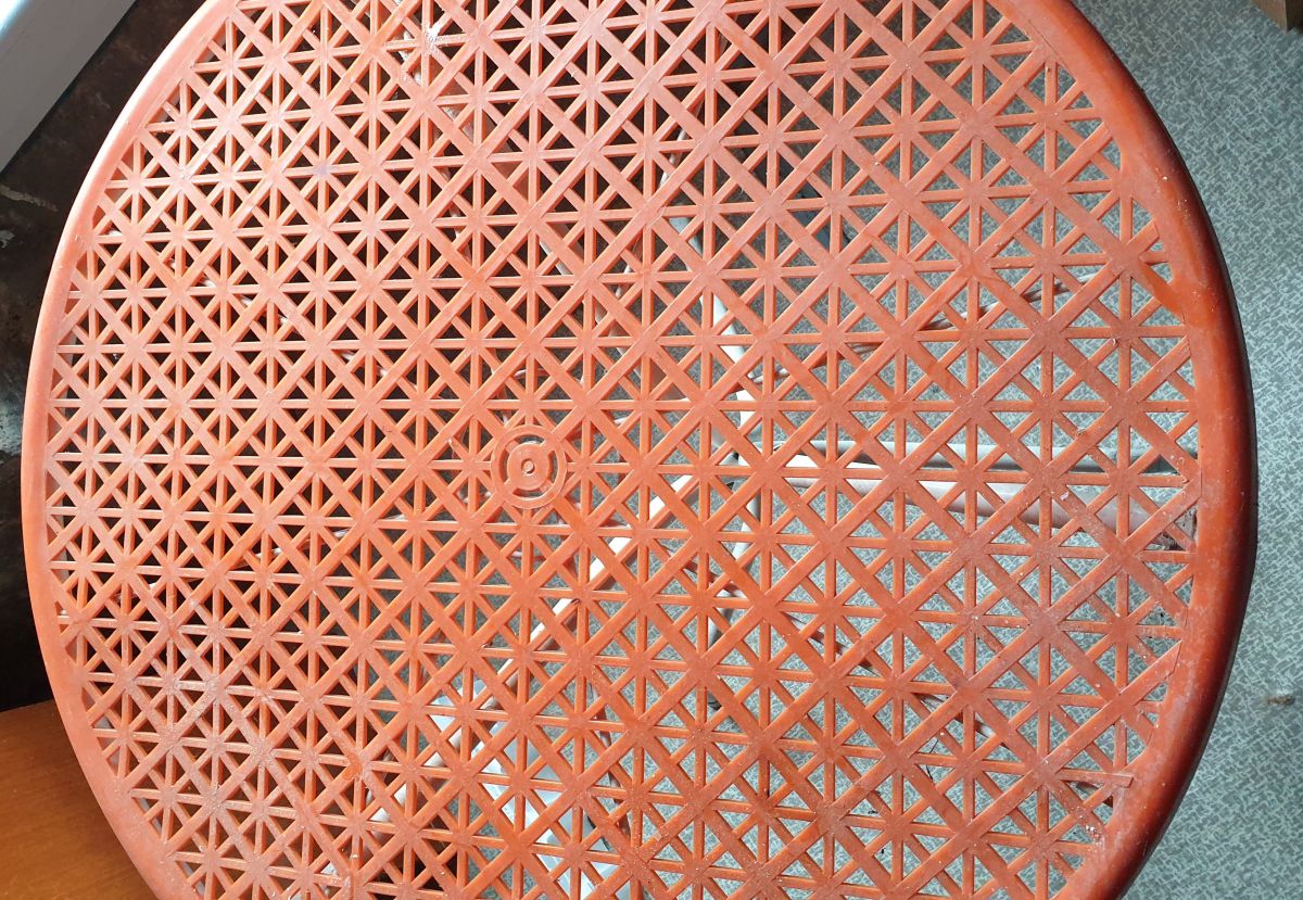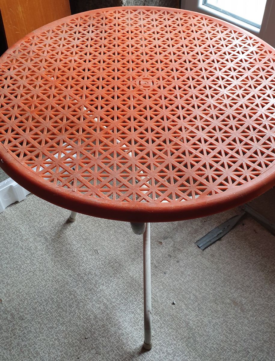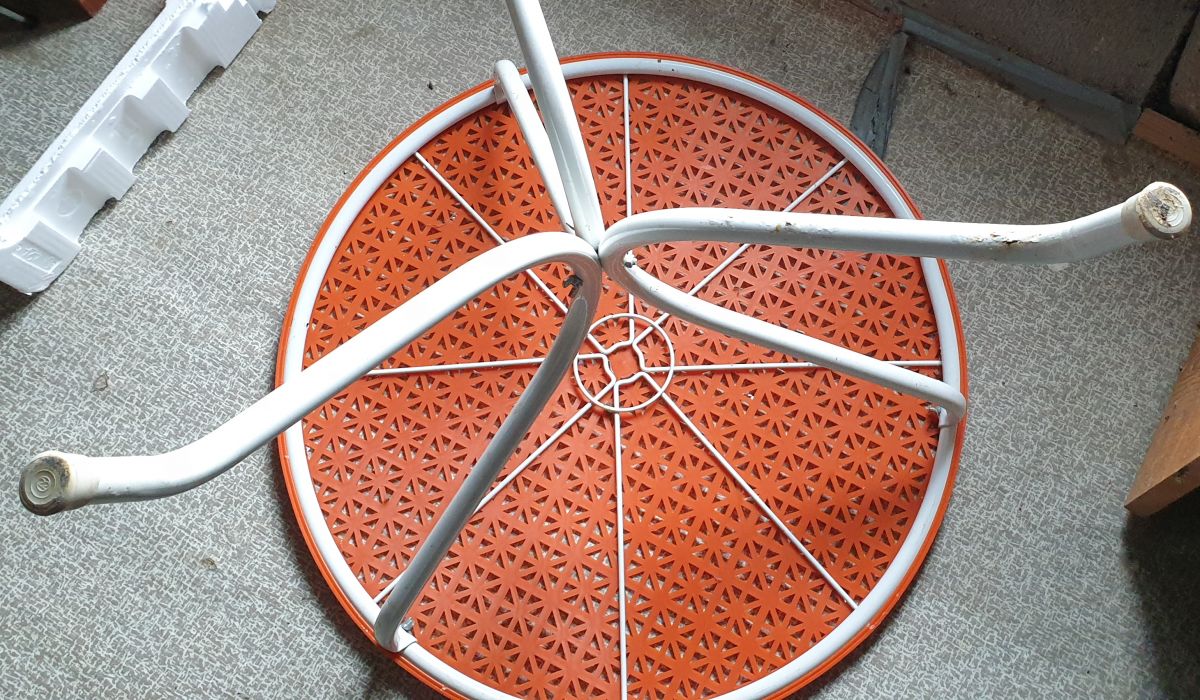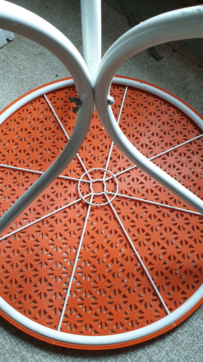 3 pieds métalliques blancs (la peinture se caille sur l'un d'eux).