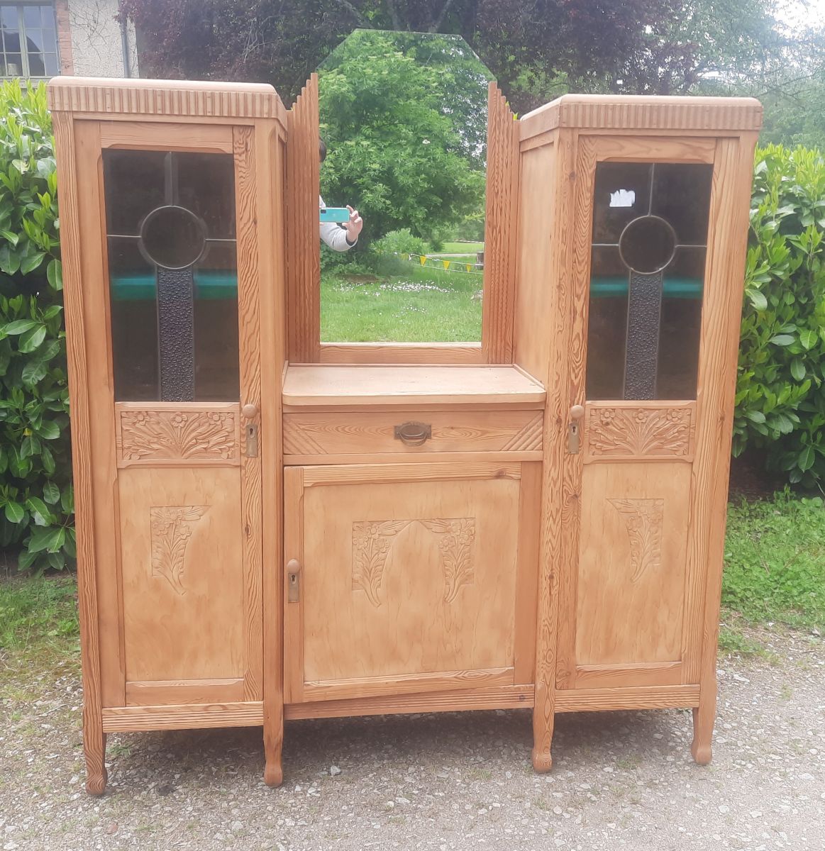 Le meuble a été sablé et huilé. Quelques marques d'usure, notamment une fissure.