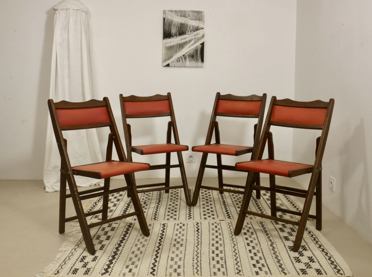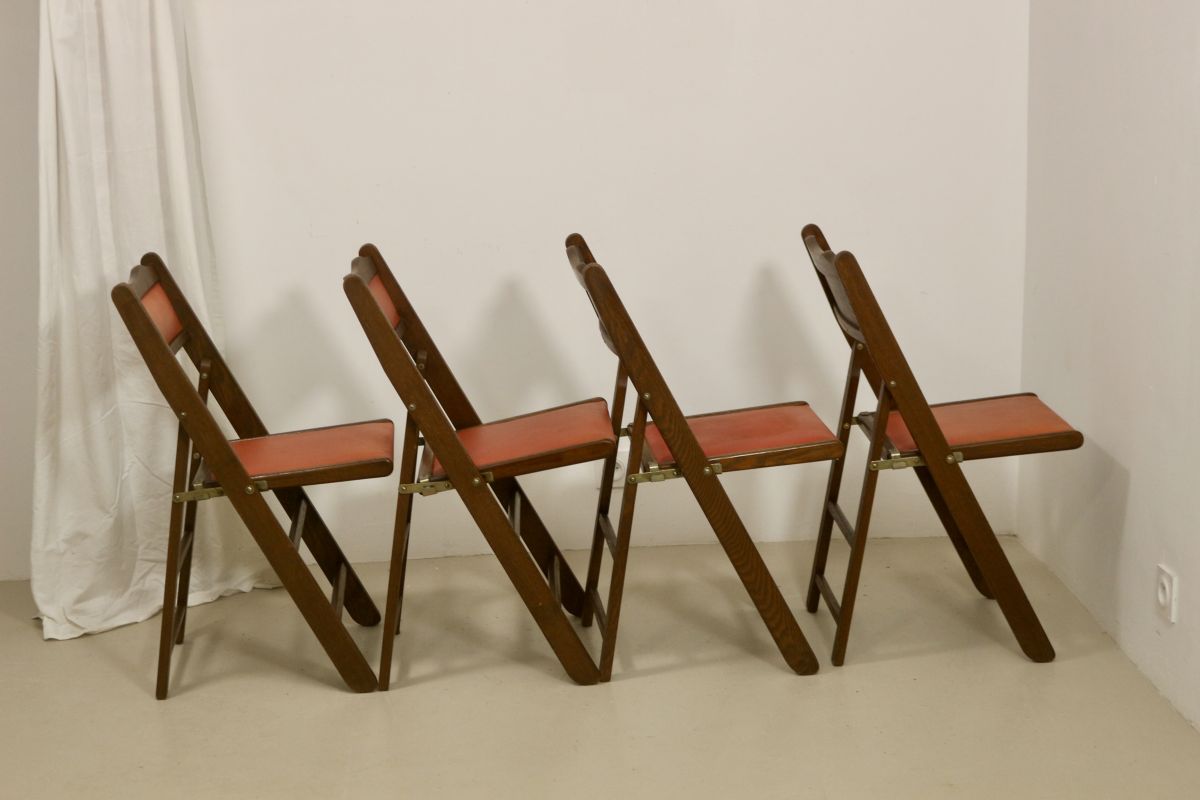 Lot de 4 chaises pliante art deco bois de cédre année 50, re