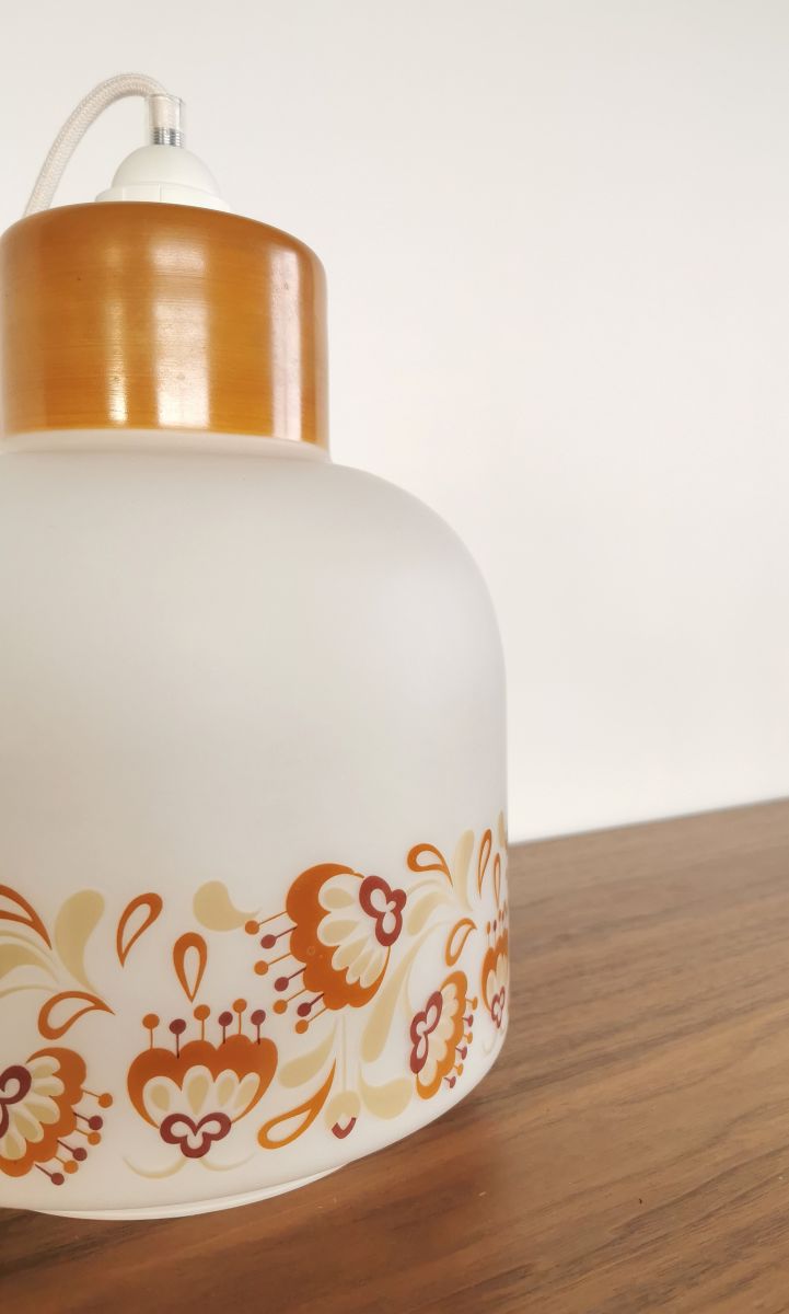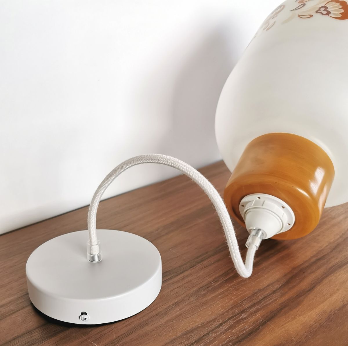 Lampe suspension vintage années 70 opaline "Blanc orangé"