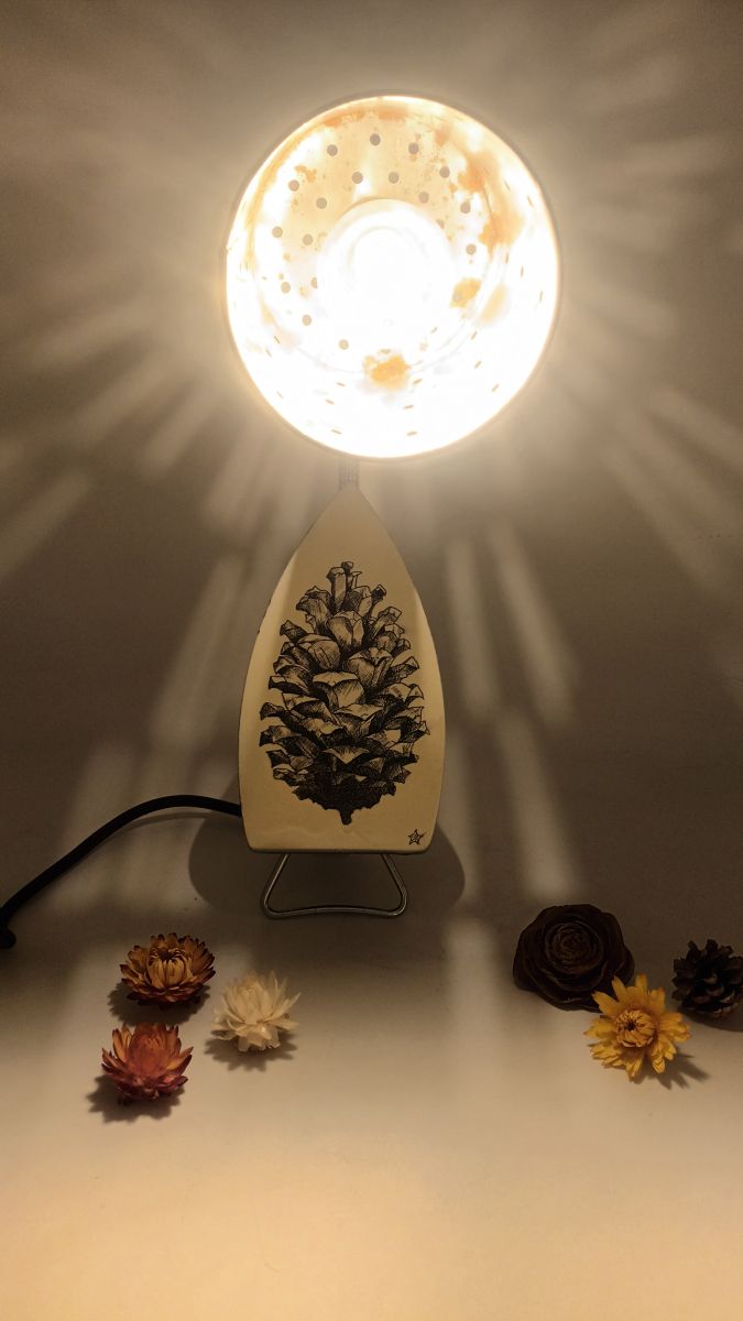 L'ampoule led à culot E14 consomme 4w. Elle est montée sur un kit électrique pour lampe de chevet acheté dans le commerce,pour une sécurité fiable.
