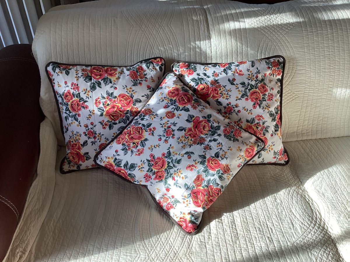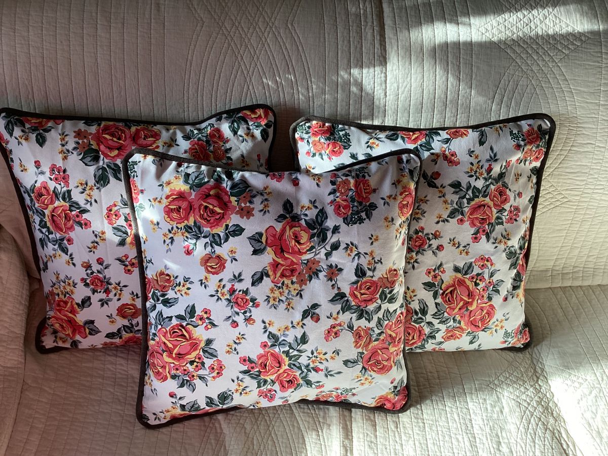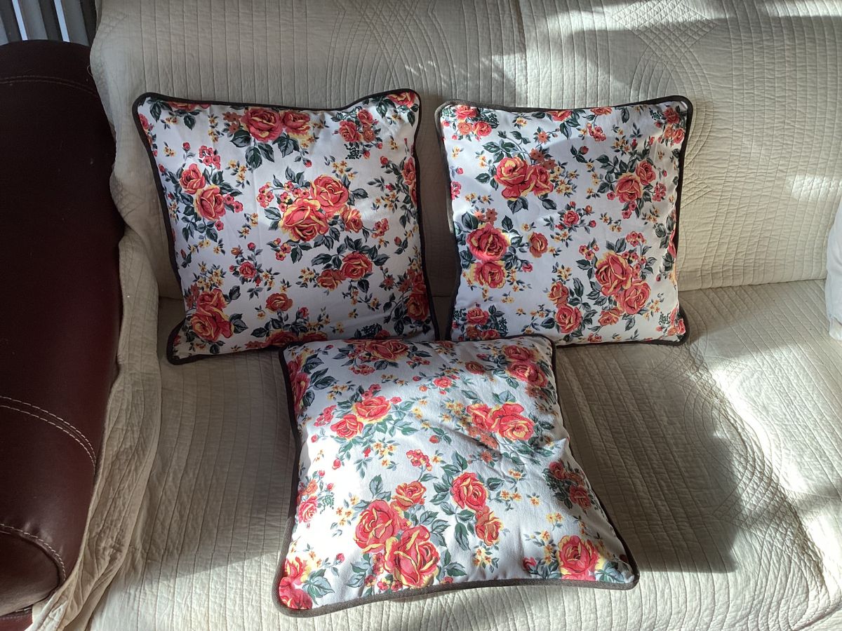 3 coussins décoration coton décor floral dimensions 40 cm par 40 cm fait main neuf
