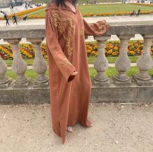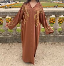 Magnifique kendoura marocaine en crépe rosa /col officier brodé /manches brodées /taille unique