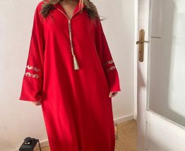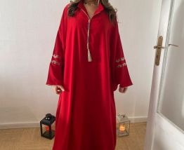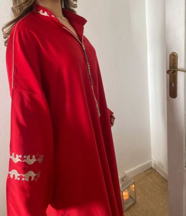 Kendoura en crépe rosa/ col officier brodé / manches brodées / taille unique (jusqu’a XXL)