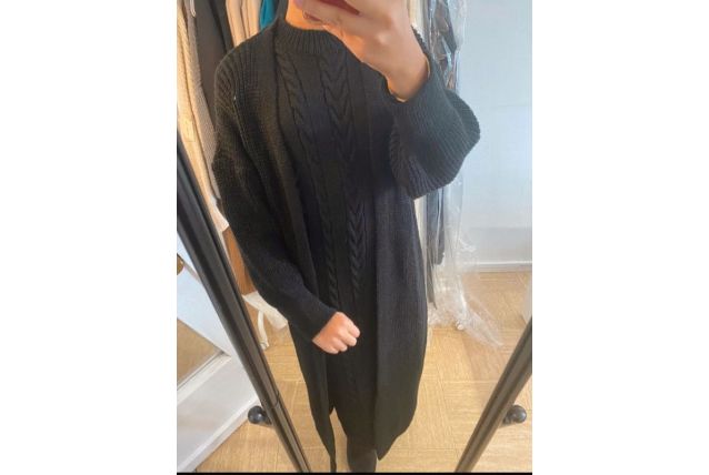 Magnifique ensemble gilet +robe long sans manches en maille