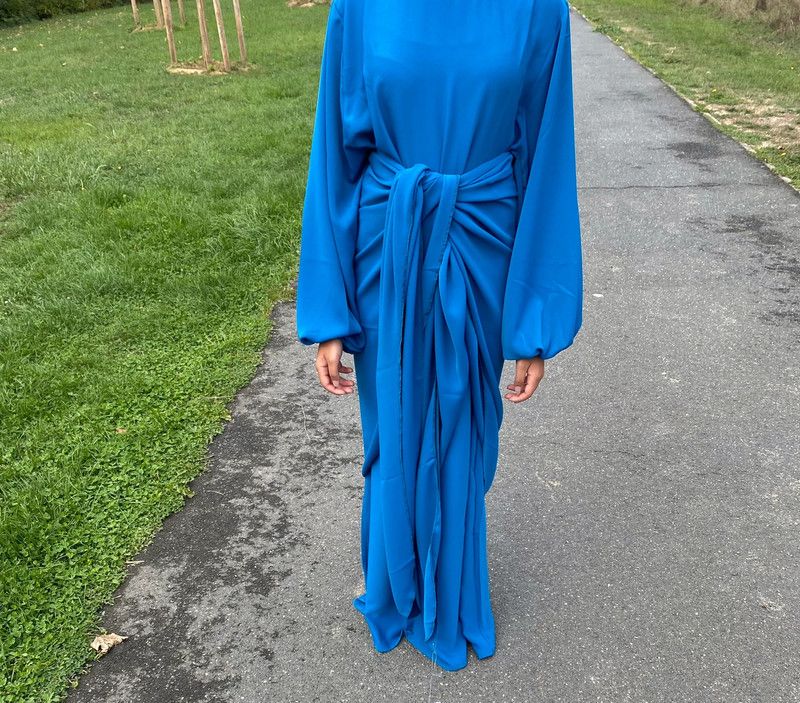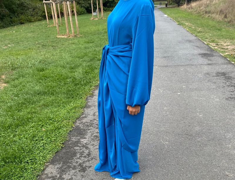 Nouveauté ! Jolie Abaya deux pièce bleu, peut se porte en Abaya simple ou deux pièces