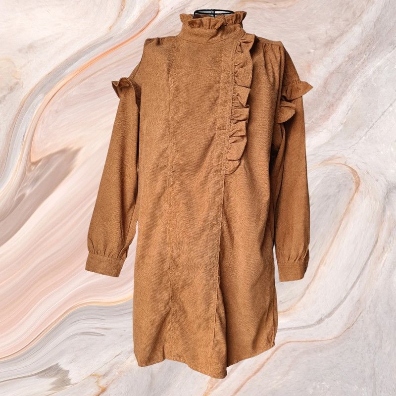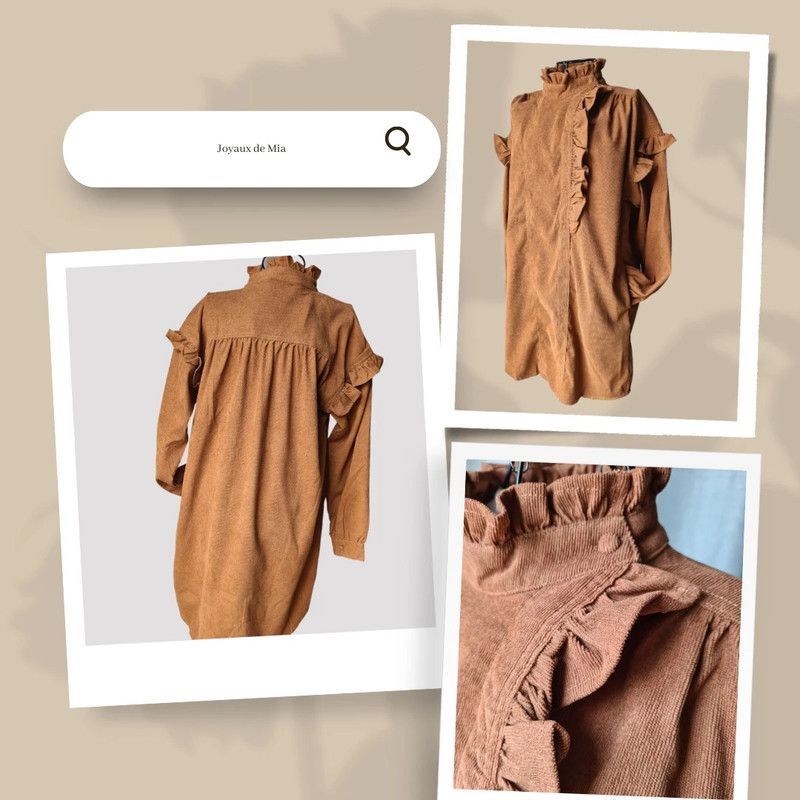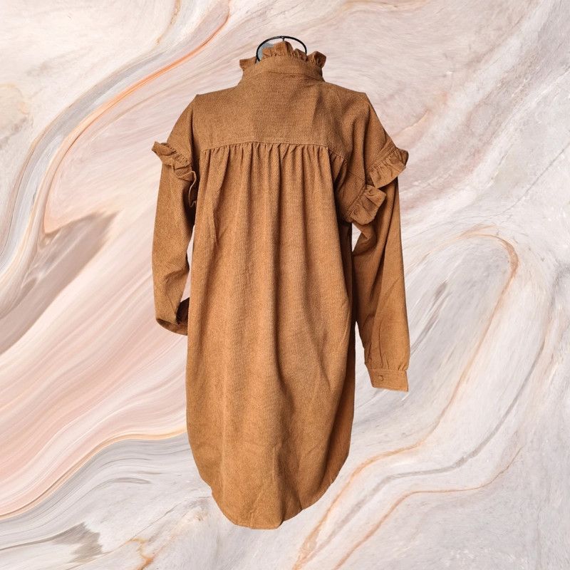 Robe marron col officier effet velour