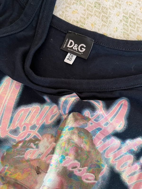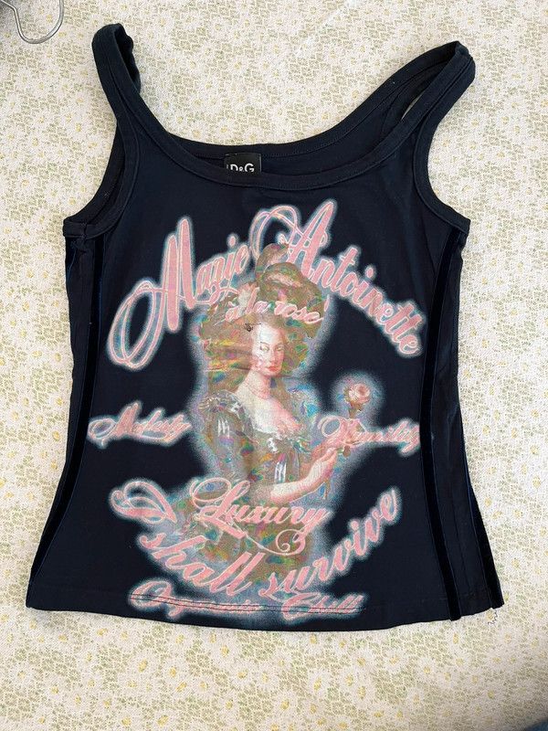 Canottiera D&G nera con stampa Maria Antonietta di Francia ed inserti in velluto. Taglia 40. Indossata pochissimo, come nuova.