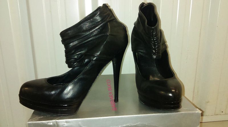 515* Belle paire d'escarpins en cuir de la marque Barbara BUCCI. Pointure 39 - talons de 14 cm (plateau de 3 cm). tirette pour un enfilage facile. Jamais mis! prix neuf de 70 € - une affaire !