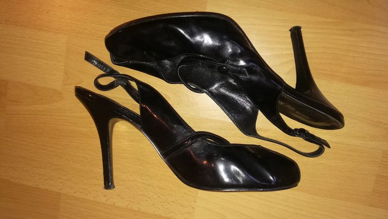 27A* Superbes sandales de couleur noire de chez MER DU NORD. Total cuir. Pointure 41. Talons de 11 cm. Bonne occasion, mais coups sur les talons.