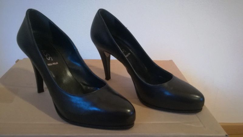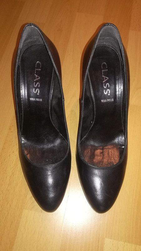966* Belle paire d'escarpins couleur noire en cuir de la marque CLASS, made in Italy. Pointure 39 - talons de 10 cm. ETAT NEUF!