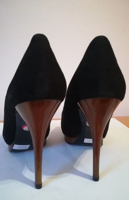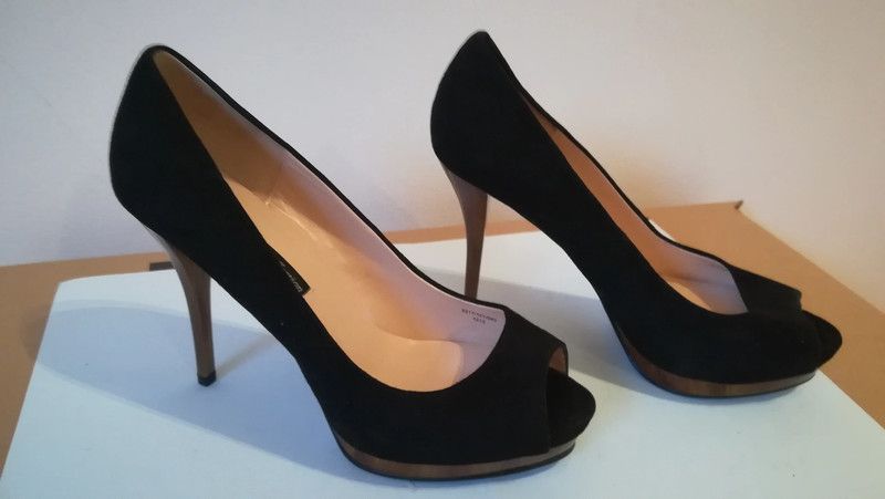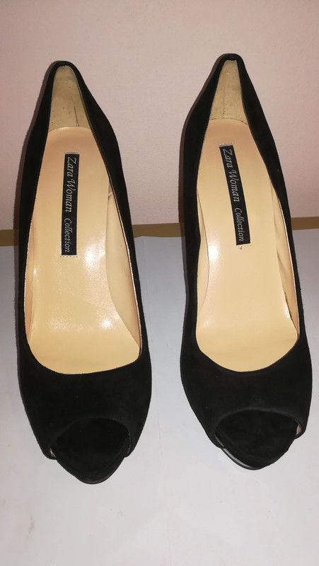 526A* ZARA sexy escarpins noirs peep toe high heels (39)