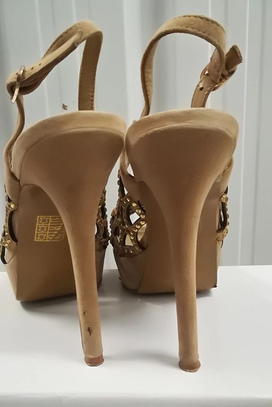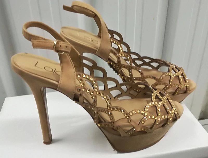 879* Superbes sandales tout cuir (3 x) de la marque de luxe LOLA CRUZ. Pointure 39. Talons de 12 cm avec plateau de 3 cm. Très bonne occasion !