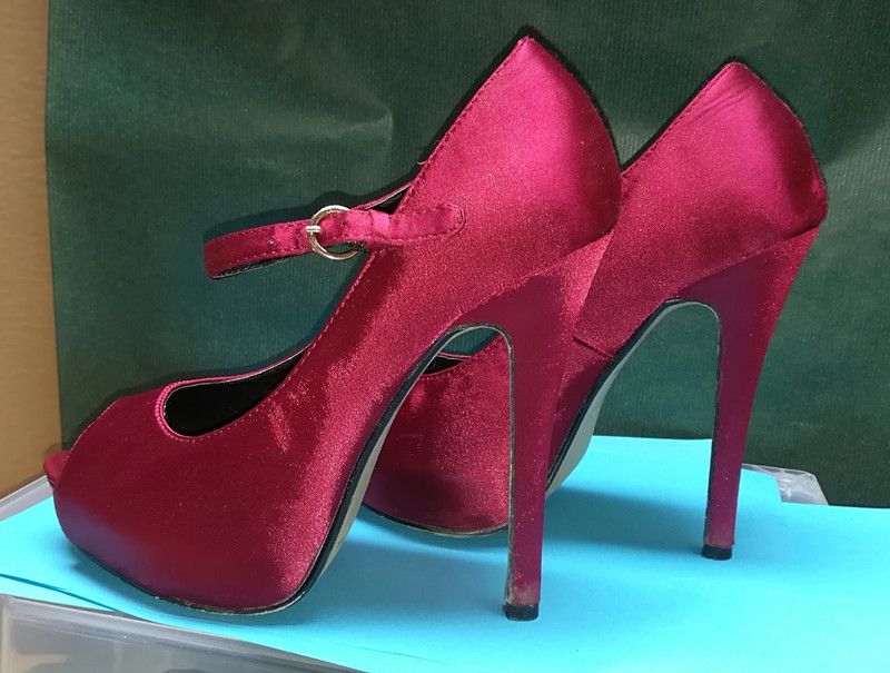 861* Superbes pumps peep toe bordeaux de marque NEW LOOK. Pointure 37. Talons de 13 cm avec plateau de 2 cm. Portés 3 fois, bonne occasion.