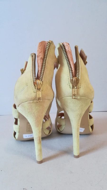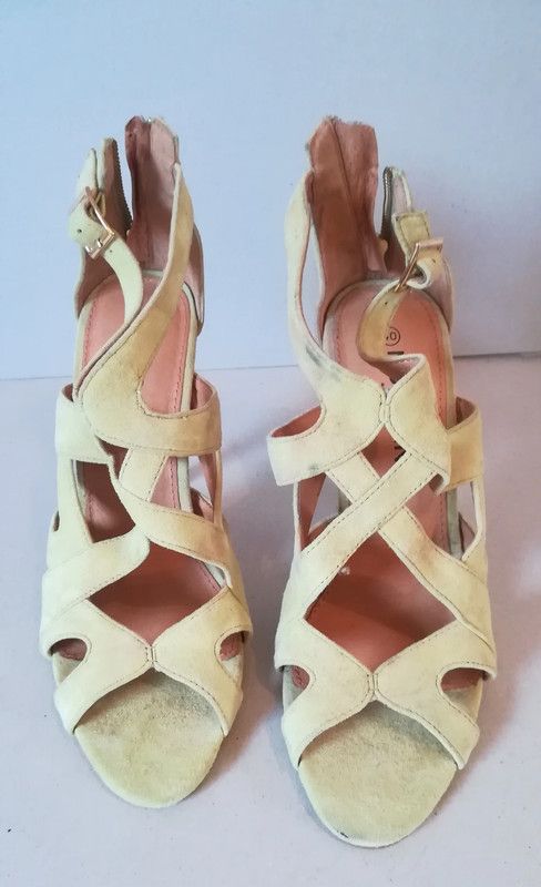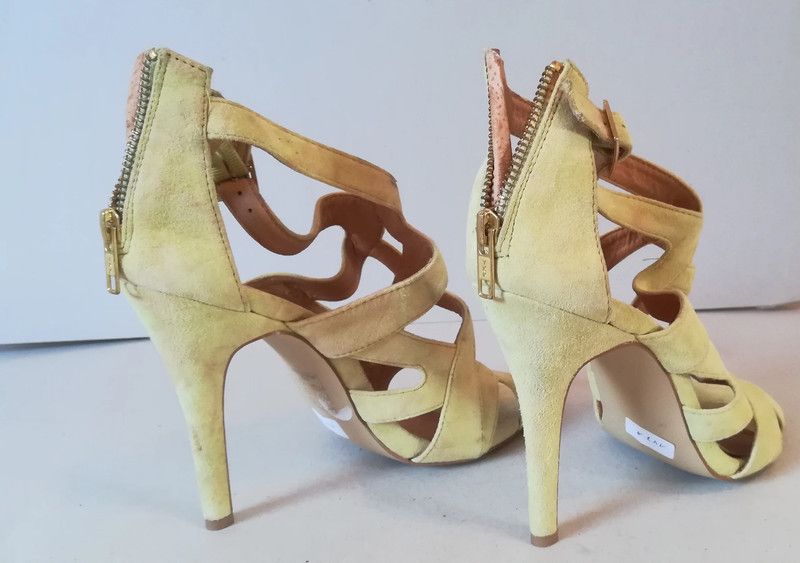 147A* Belle paire de sandales couleur vert-jaune cuir véritable de chez MORGAN. Pointure 40 - talons de 11 cm. Neuves mais présente des petites taches (voir photos)!