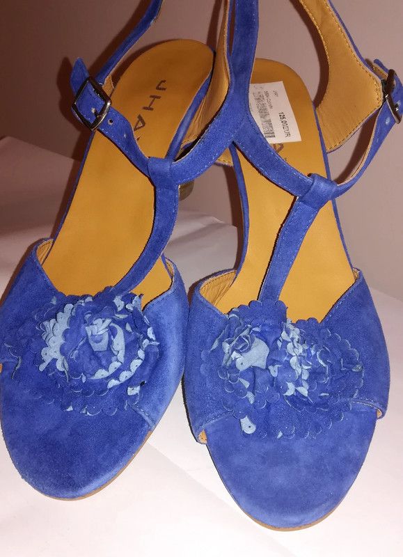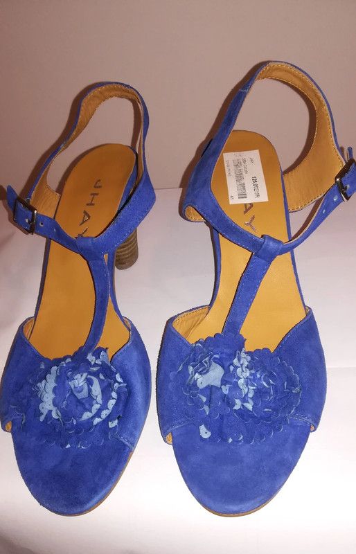 81A* Superbes sandales bleues high heels de chez JHAY. Tout cuir. Pointure 41. Talons de 8 cm. Neuves, prix achat 125 €.