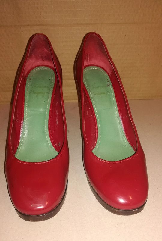 758A* Superbes escarpins rouges de la marque de luxe VERONIQUE MERGRAY. Entièrement en cuir de haute qualité. Pointure 40. Talons de 10 cm. Très bonne occasion, portés 2 fois. A noter quand même petites tâches (voir photos) à peine visible ! Très chères à l'achat.
