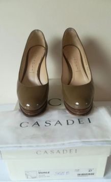 779A* Belle paire de boots de couleur noire tout en cuir (3x) de chez SPAZIOMODA. Pointure 37 - talons de 9 cm - hauteur totale de 23 cm. Mis 2 fois.