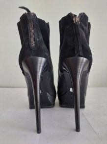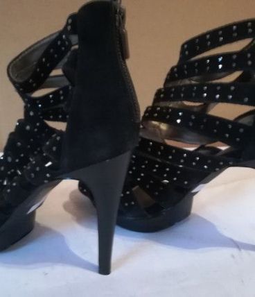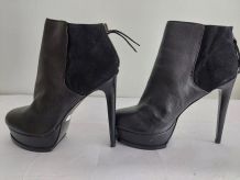 920A* Superbes sandales noires et ultra sexy de la marque FOSCO. Cuir. Pointure 39. Talons de 11 cm avec plateau de 2 cm. Mises 2 fois.