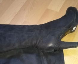 975* belles bottes de couleur noire en cuir nubuck (int+ext) de la marque PIURE. Pointure 37. Hauteur totale de 47 cm. Talons de 9 cm. Largeur sommet de 19 cm. Portées 3 fois!
