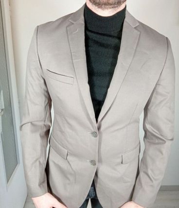 Belle veste costume gris taupe brice homme taille 50 je mesure 1m74 79kg c'est moi sur la photo elle me va bien