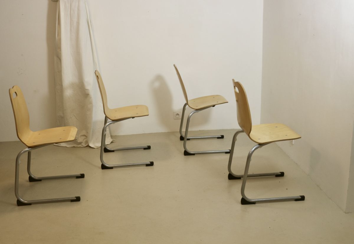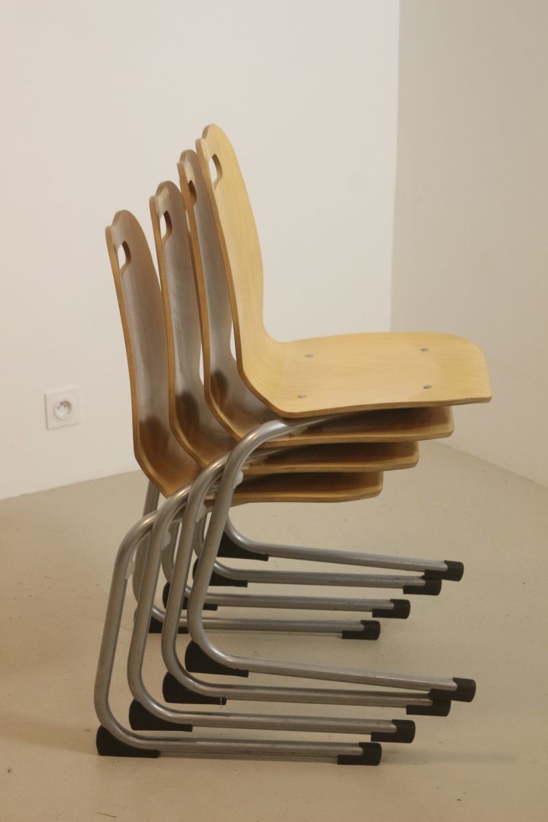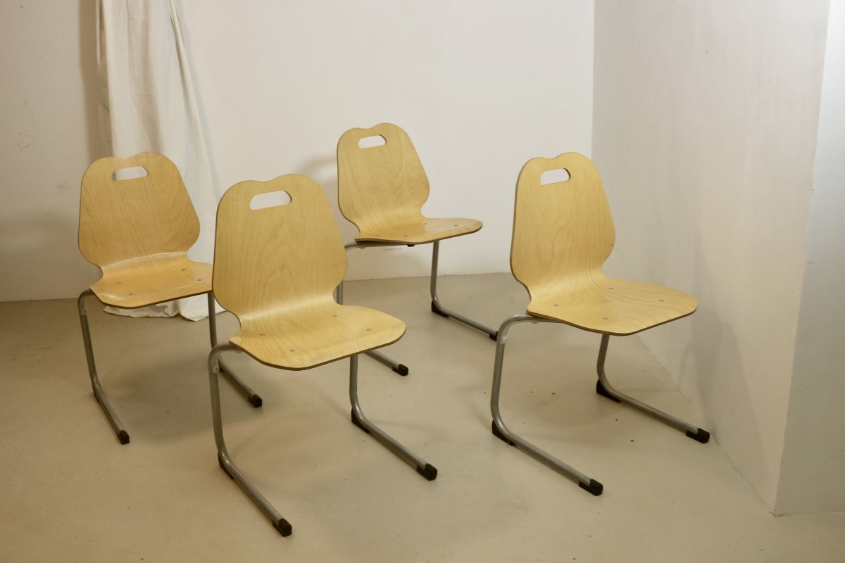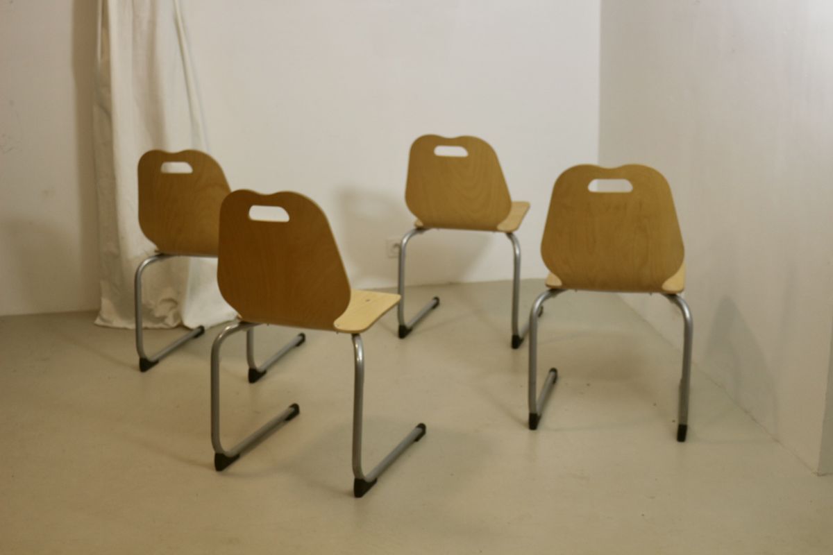 Lot de 4 chaises de cantine vintage. Année 90, Réf martina