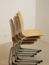Lot de 4 chaises de cantine vintage design original , structure en bois et piètement en aluminium teinté en gris , empilables ,