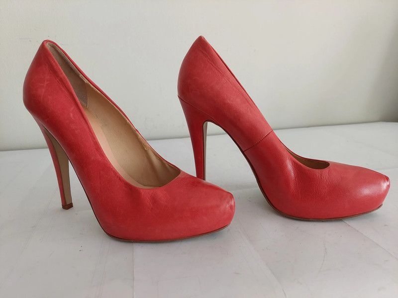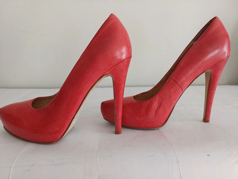 221C* superbes escarpins couleur framboise en cuir de chez United Colors of Benetton. Pointure 40 - talons de 12 cm avec plateforme de 2 cm. Mis une fois.
