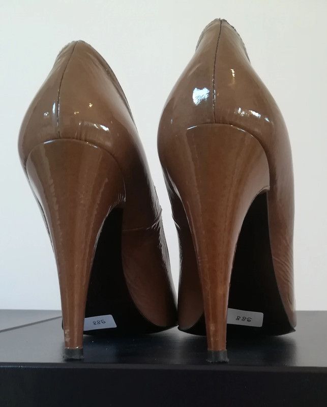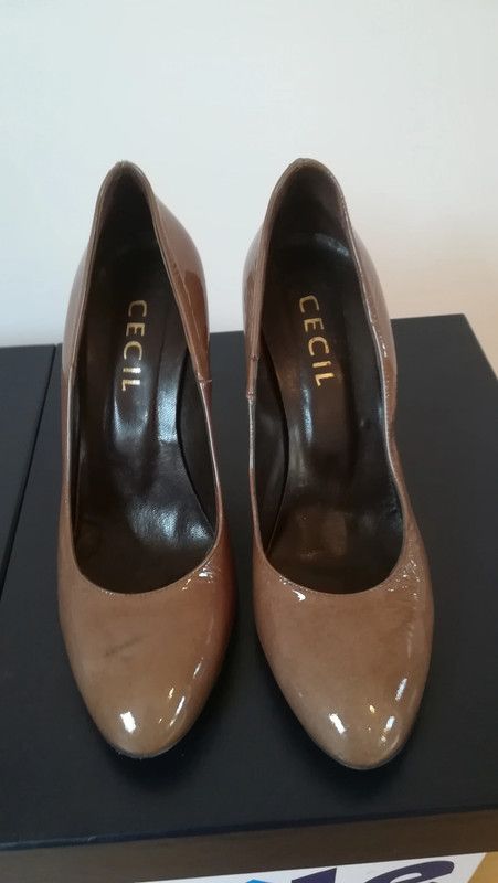 988* CECIL jolis escarpins taupe cuir verni (40)