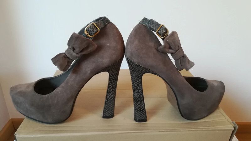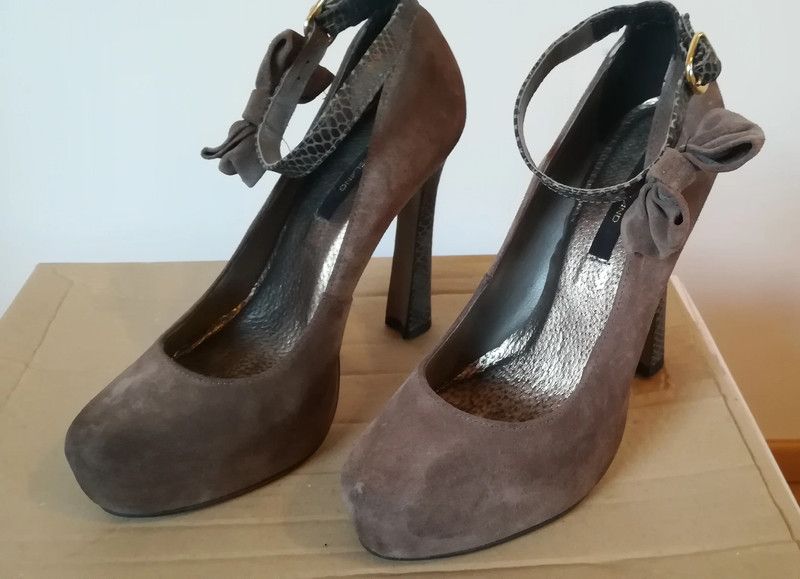 983* belle paire d'escarpins couleur taupe en cuir de la marque RIVER ISLAND. Pointure 40 - talons de 13 cm avec plateau de 3 cm. Portés 2 fois! Prix achat 129 €.