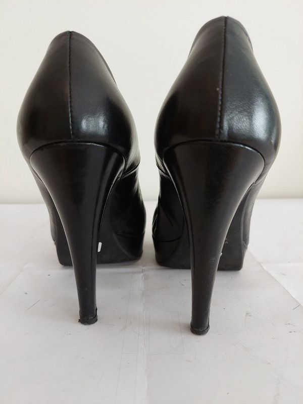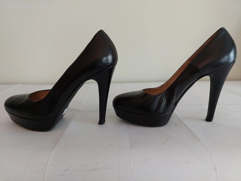149C* Très belle paire d'escarpins noirs en cuir de la marque Marco. Pointure 37 - talons de 11 cm avec plateforme de 2,5 cm. Bonne occasion.