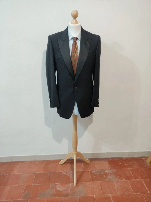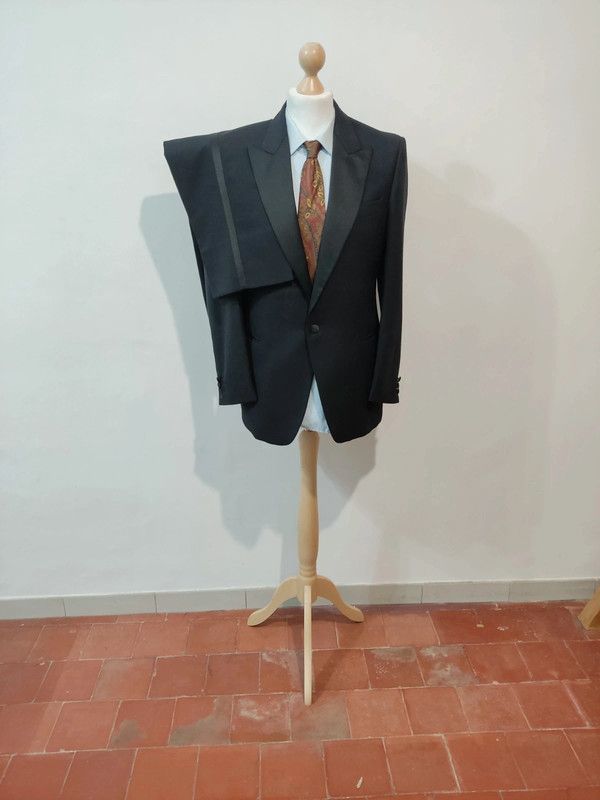Je vous propose ce somptueux smoking de couleur noire en laine.