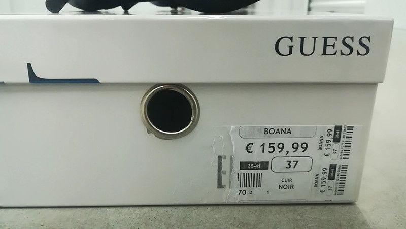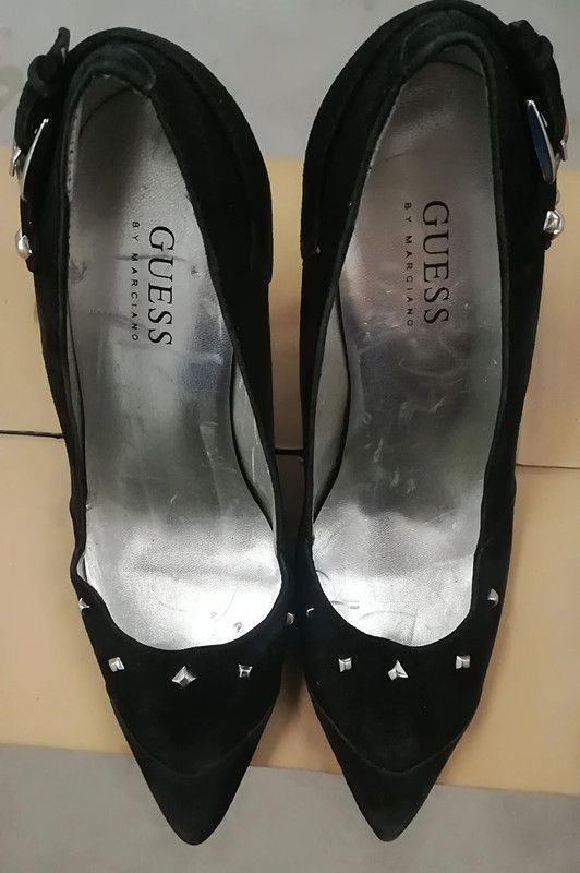 886* Superbes escarpins noirs de marque GUESS. Cuir. Pointure 37. Talons de 10 cm. Quasi Neufs, mis 2 fois! Prix achat de 160 €.