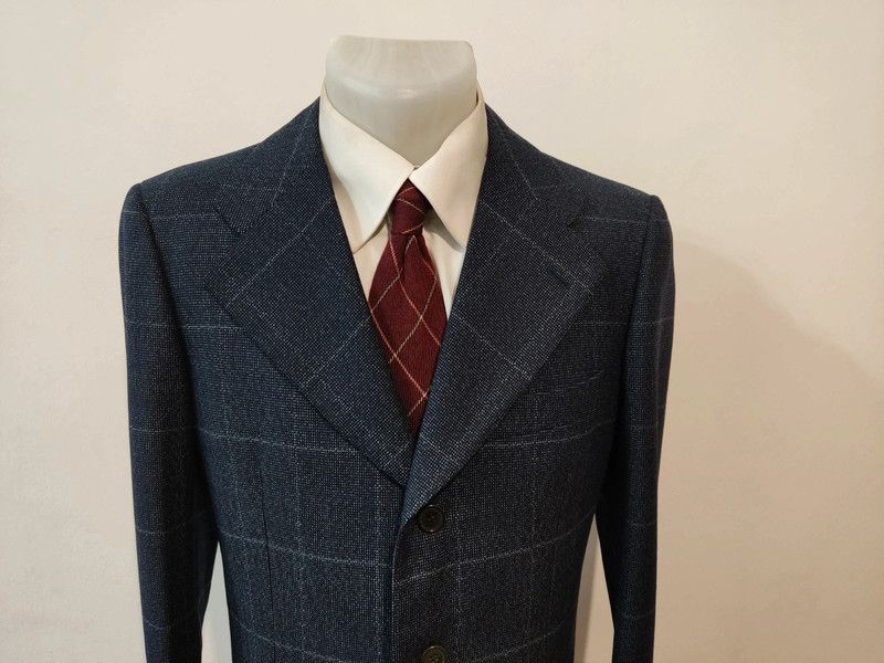 Je vous propose cette gentille veste couleur bleu gris à carreaux en laine.