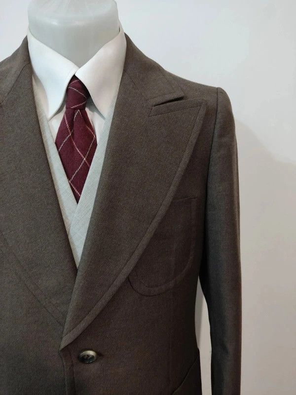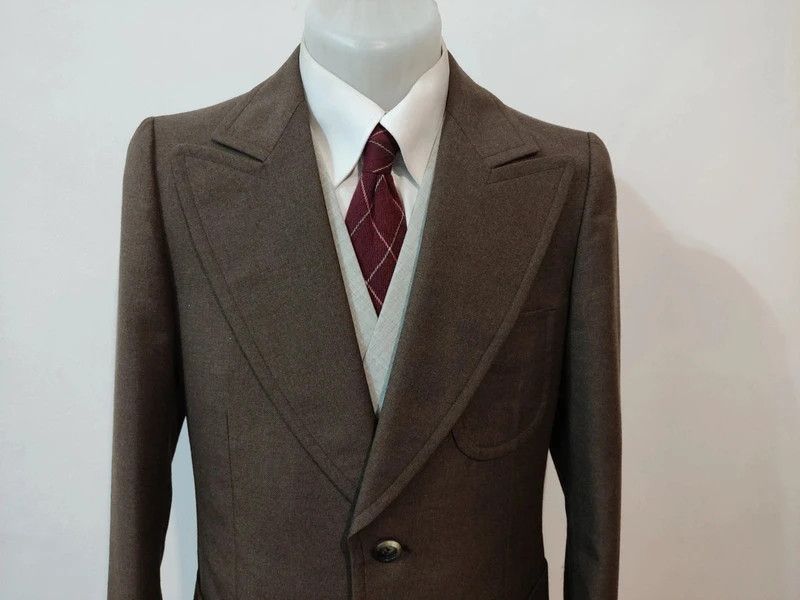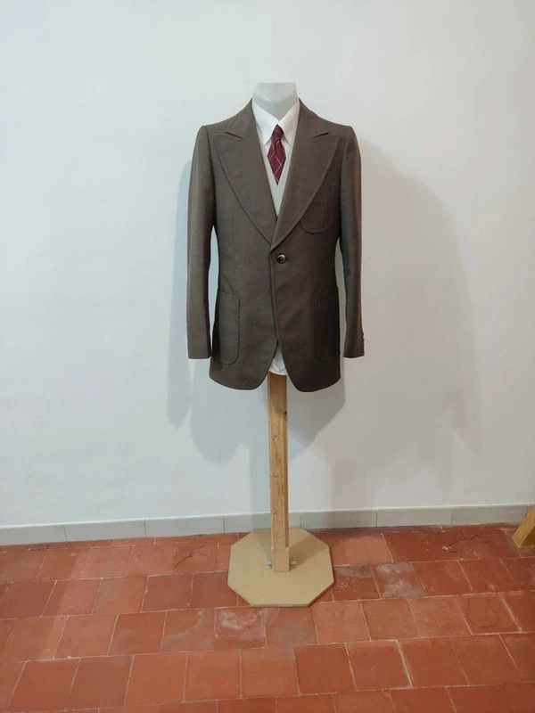 Je vous propose cette impressionnante veste de couleur marron en laine.