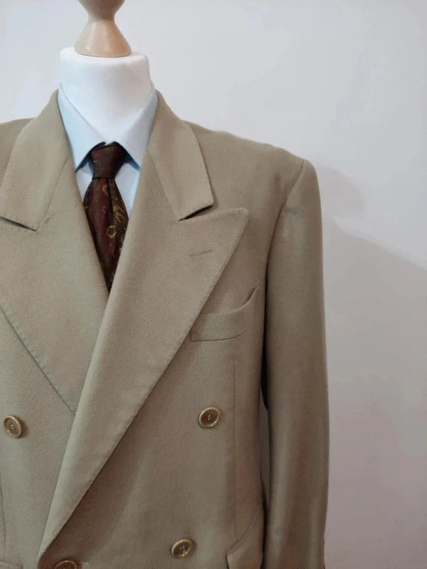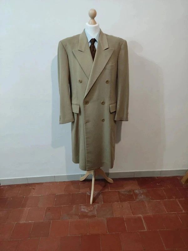 Je vous propose ce fabuleux manteau croisé de couleur beige en laine et cachemire de chez corneliani.