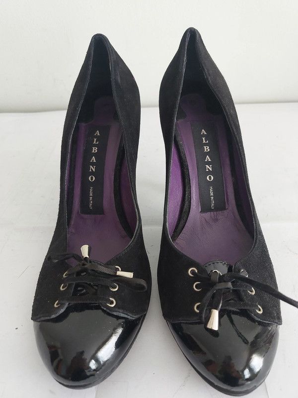 165C* Magnifiques escarpins de couleur noire de chez Albano. Tout cuir. Pointure 40. Talons de 10 cm. Neufs et chers à l'achat. Très bon état.