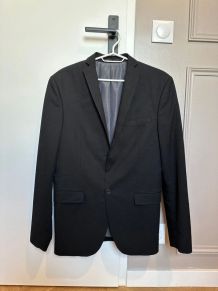 Je vous propose c'est génial costume croisé de couleur gris chiné en laine.