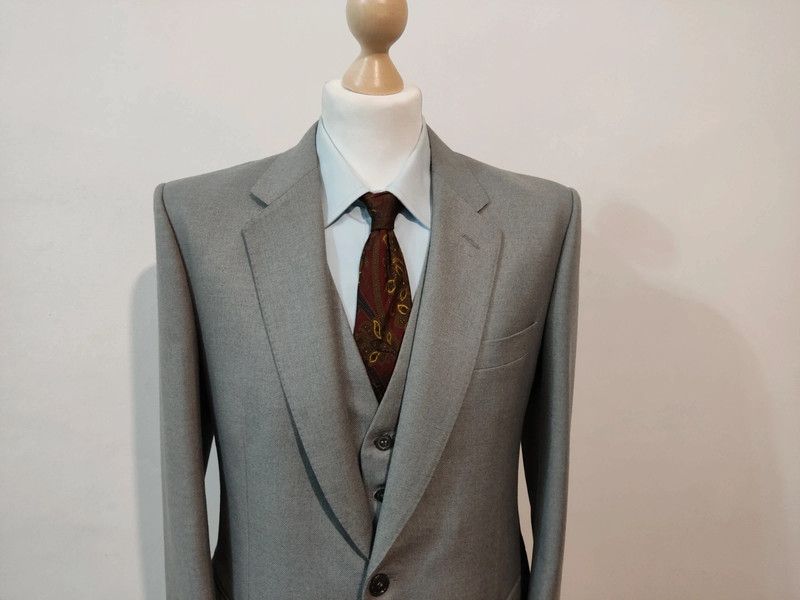 Je vous propose cette impressionnant costume trois pièces de couleur gris clair en laine.