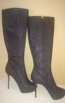 384B* Jolies bottes brunes très originales en cuir de la marque COLORI. Pointure 38. Hauteur totale de 38 cm. Talons de 7 cm. Portées une fois.
